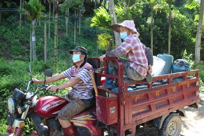保國分公司保國派駐組十三隊膠工收膠回來。余德現 攝