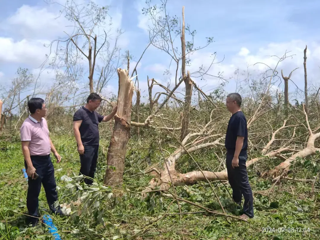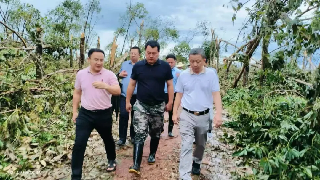 9月8日,海南橡膠黨委書記、副董事長王天明率隊赴紅光分公司調研臺風“摩羯”過境后受災情況,看望慰問受災生產隊及一線救災人員,并指導災后恢復工作。