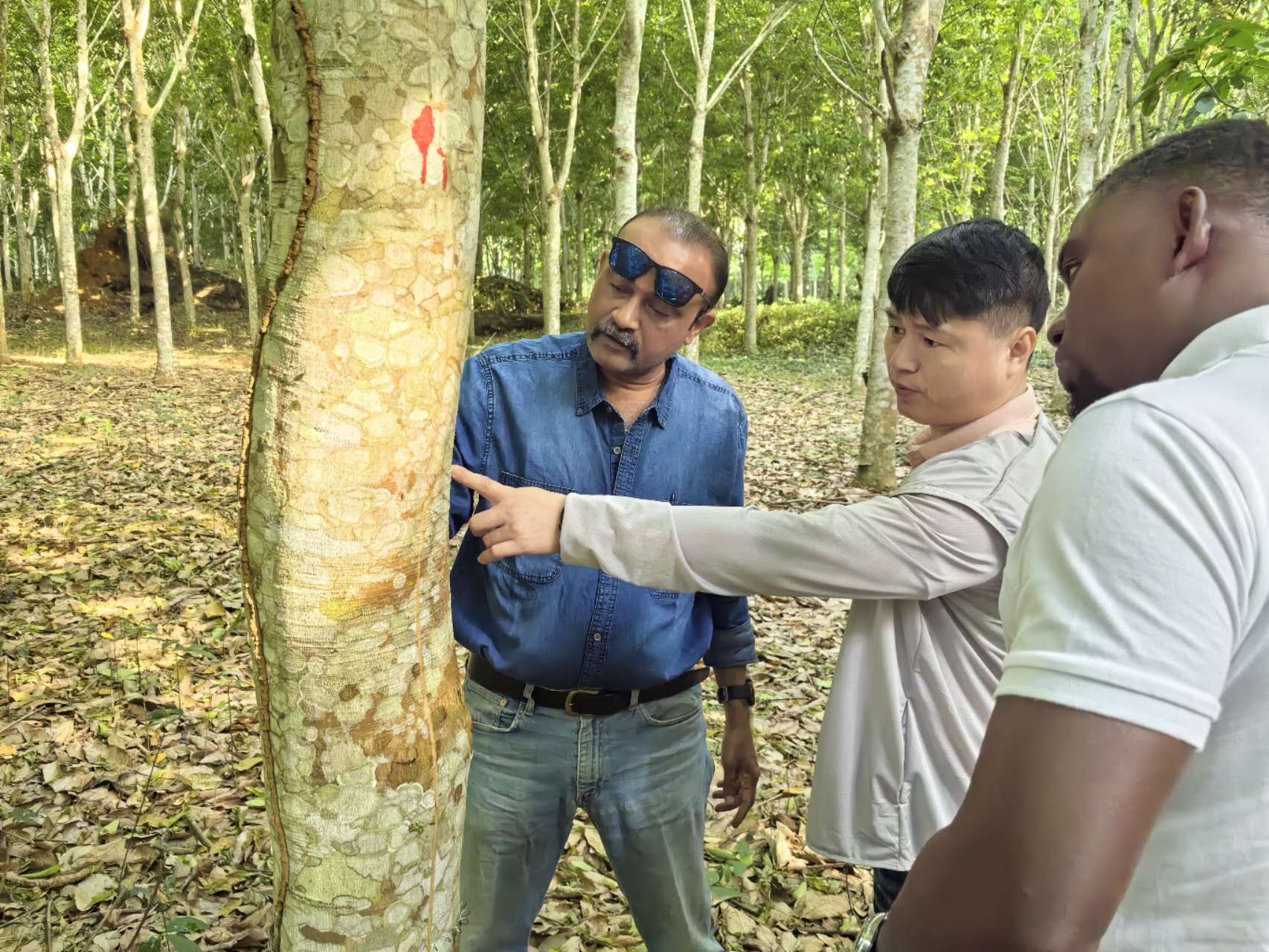 在喀麥隆種植園的每一天都充滿了新奇和挑戰(zhàn),但正是這種異國他鄉(xiāng)的體驗,讓我更加深刻地了解文化的多樣性和世界的廣闊,行萬里路與讀萬卷書有異曲同工、殊途同歸的作用,能夠讓我增長見識,開闊眼界。何興輝查看當(dāng)?shù)啬z工割膠情況。 “何總,何總,你快看看我是不是遭遇電信詐騙了?”有一天,同為海南橡膠赴非專家團成員的虞海濃神情